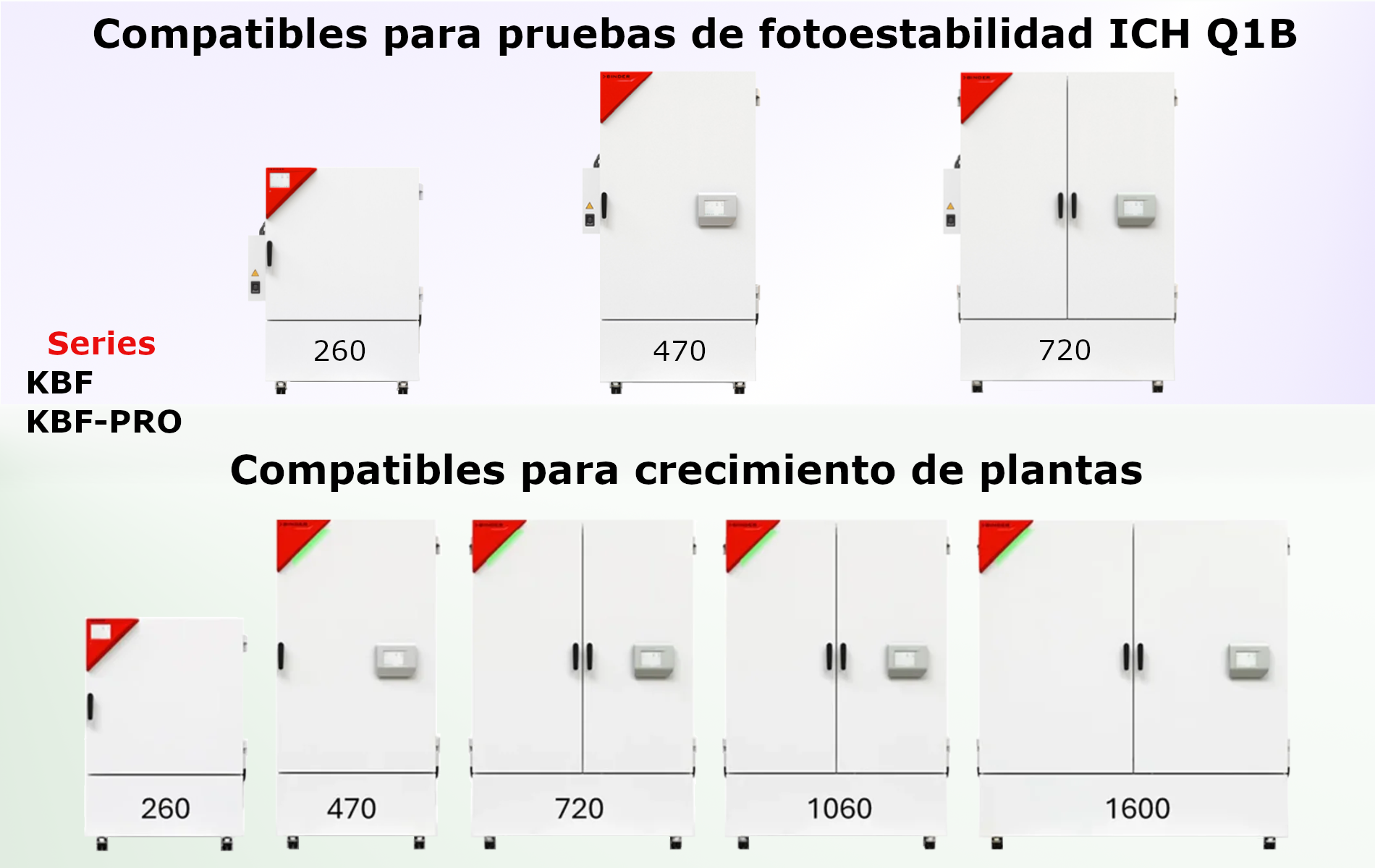 - Compatibles con cámaras BINDER KBF, KBF PRO y KB PRO, garantizando rendimiento validado en condiciones ambientales controladas.