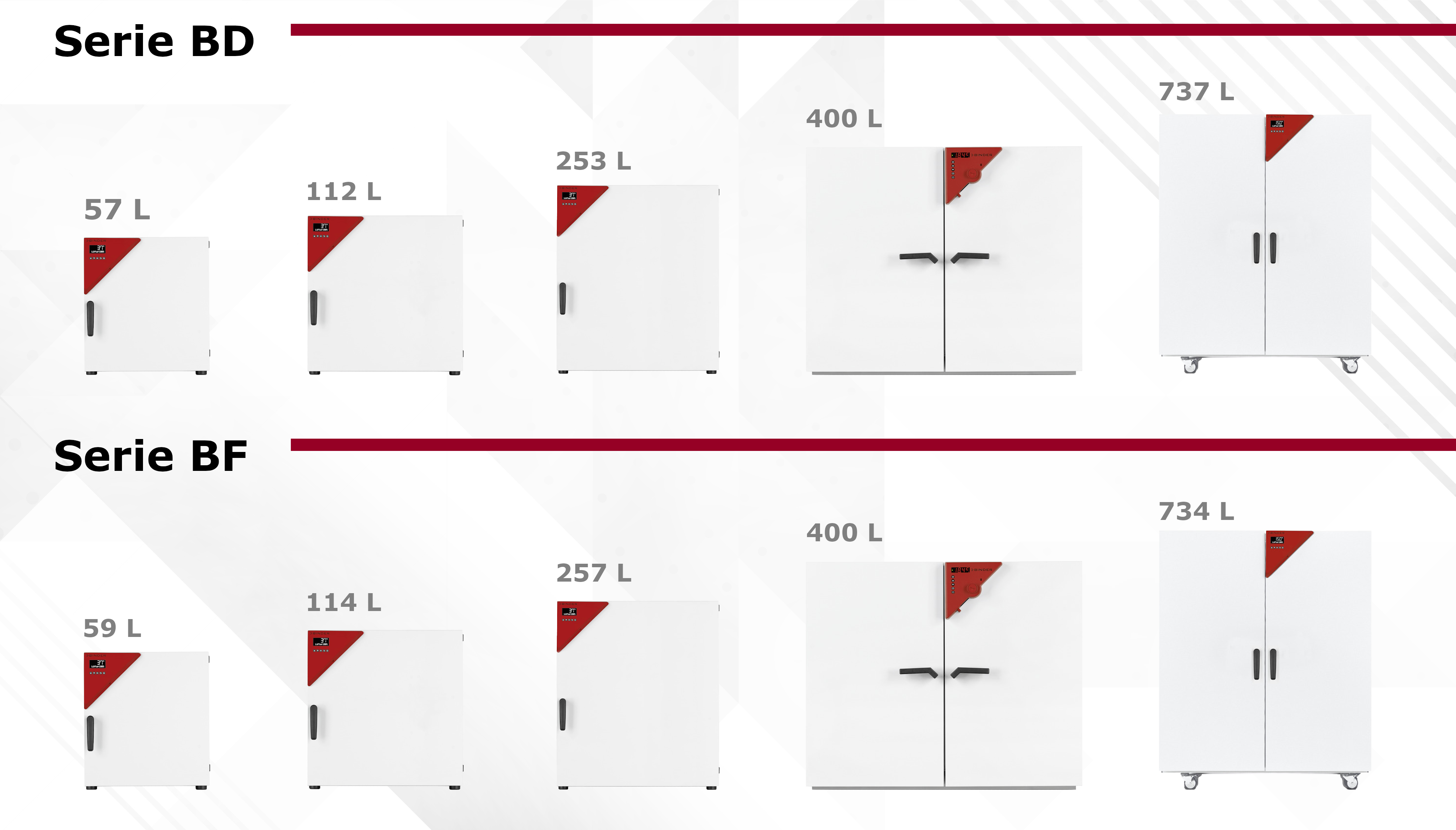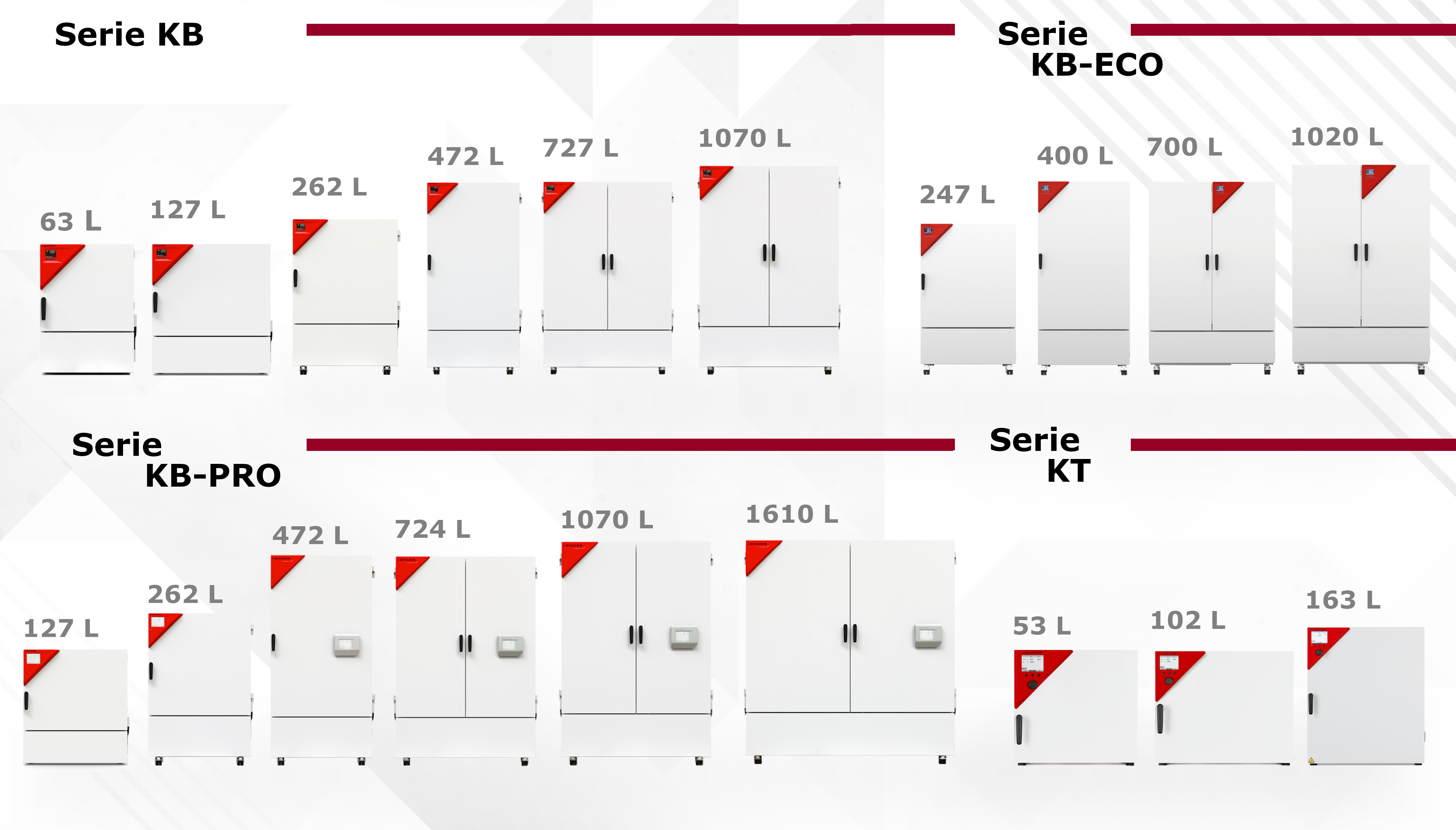 - Opciones con refrigeración por compresor o tecnología Peltier, disponibles en versiones de sobremesa o de gran capacidad hasta 1600 L.