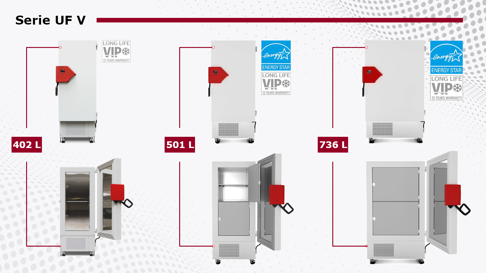 La Serie UF V combina ingeniería térmica avanzada con soluciones prácticas orientadas al uso diario, ofreciendo un entorno de almacenamiento eficiente, accesible y confiable para muestras críticas en laboratorios con alta exigencia operativa.